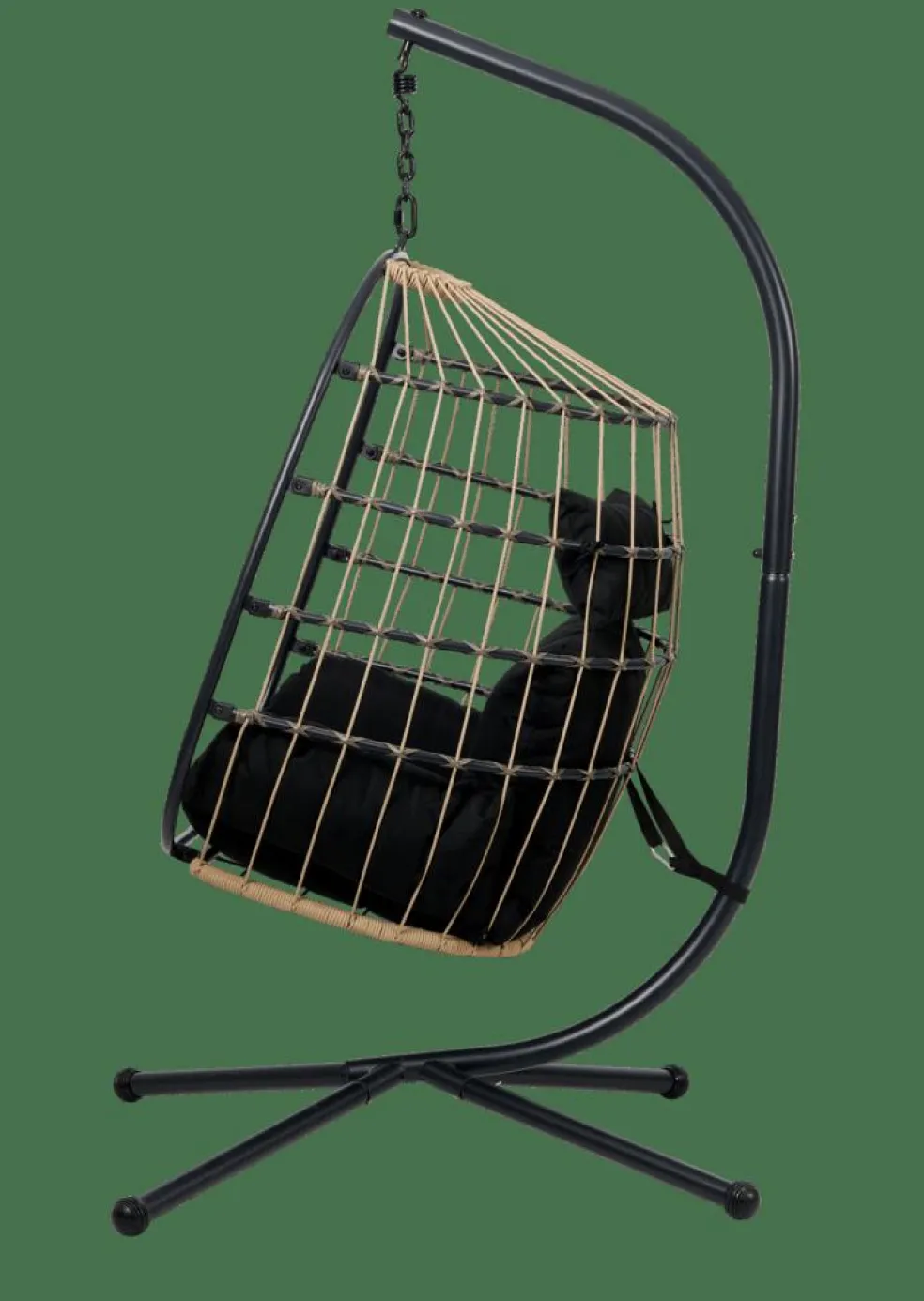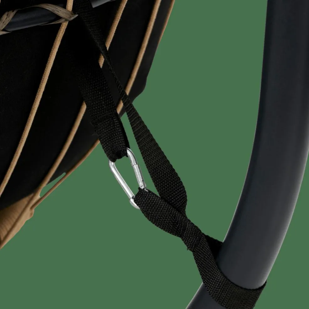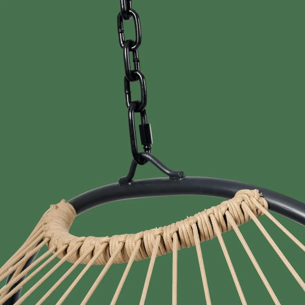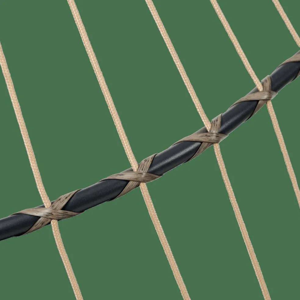 - Estrutura: aço, laca em pó preto, Ø1,8mm, Corda, natural, Ø6mm, Almofada, Poliéster fiado, preto